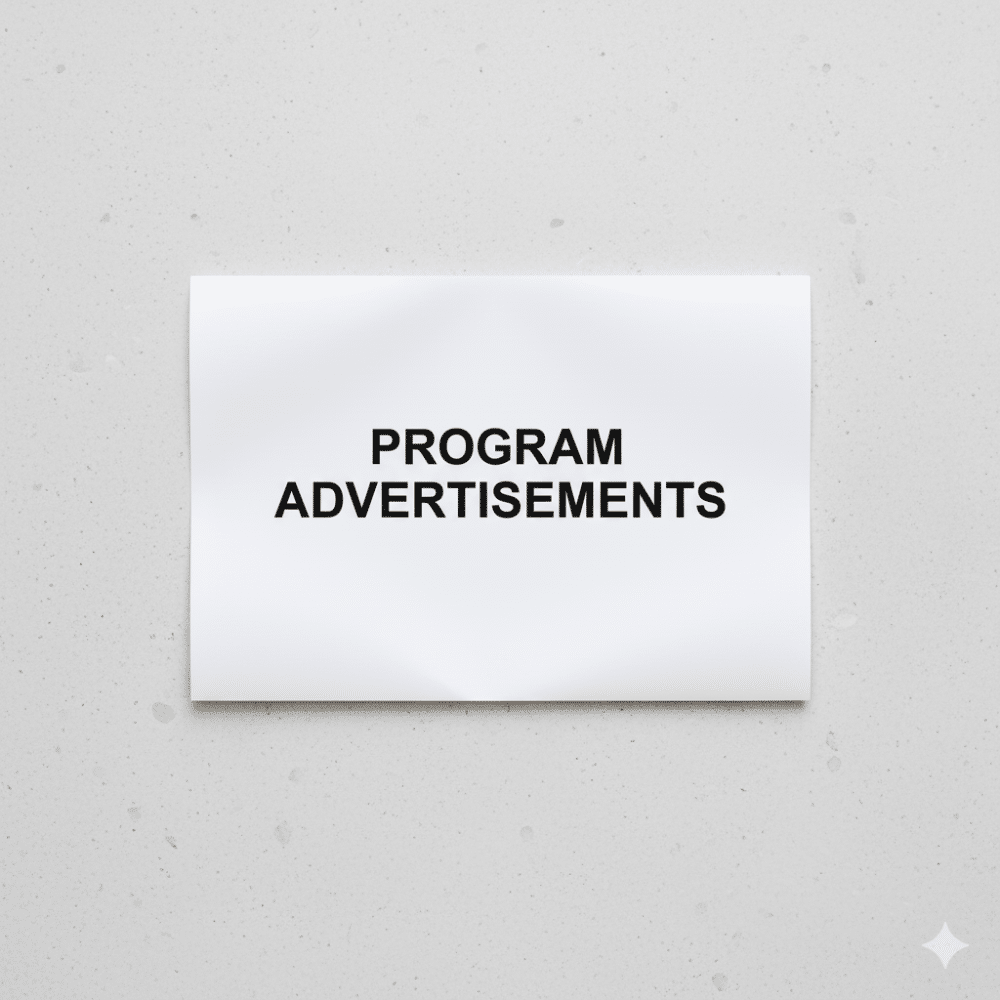 Full Page Ad, 1/2 Page Ad, 1/4 Page Ad